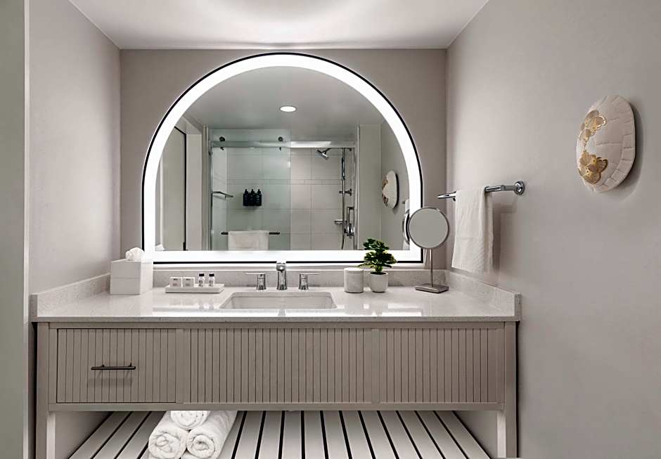 This room features a partial ocean view, flat-screen cable TV, and a seating area with a sofa bed.